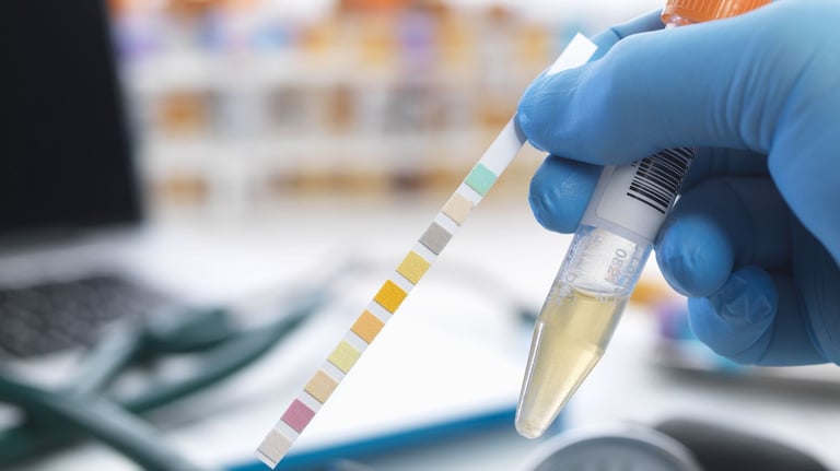 فحص البول للكشف عن وجود حصى أو بكتيريا، وفحص سوائل الجسم للكشف عن وجود التهابات.